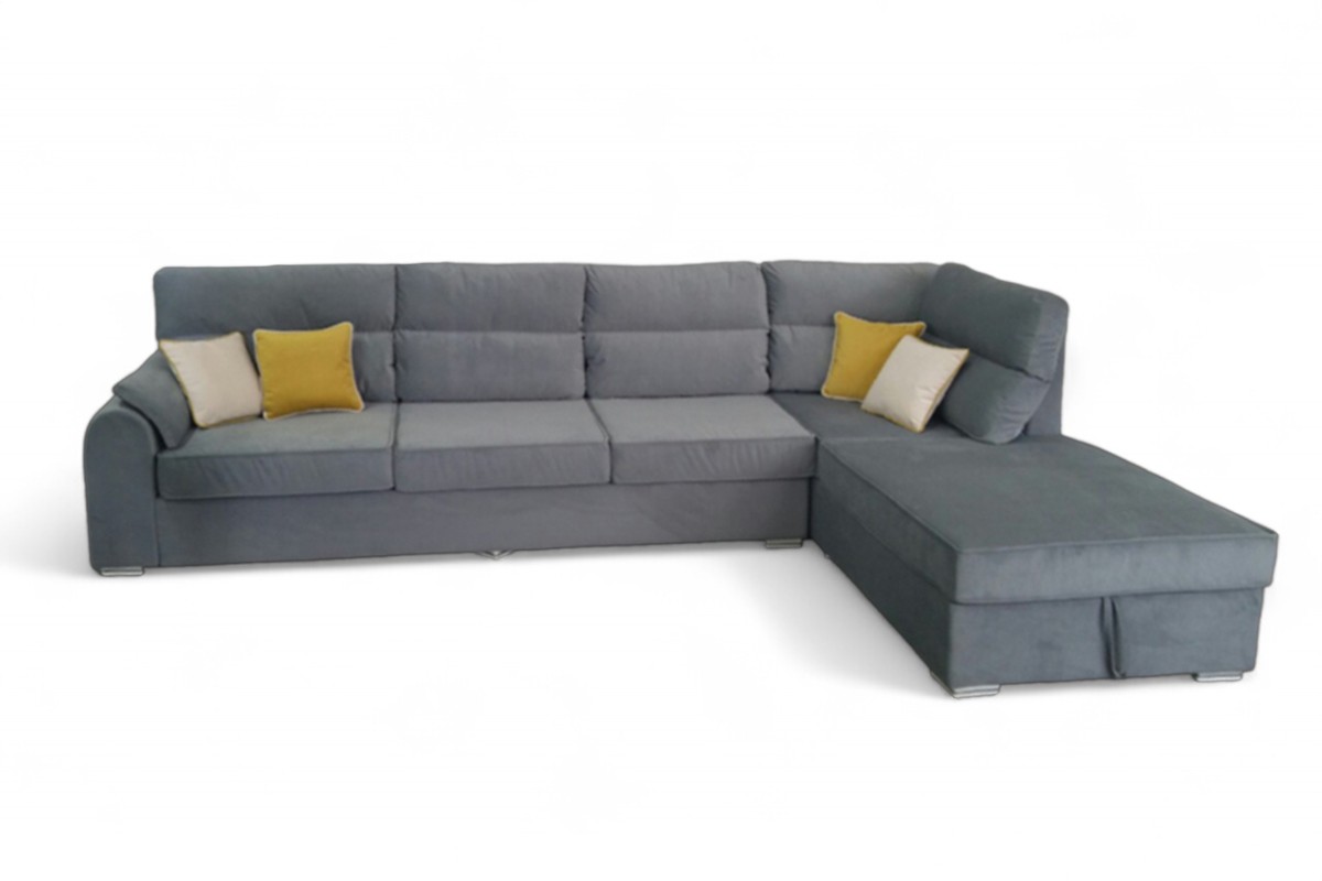 The MARINEL model is a corner sofa with a perfect combination of a three-seater sofa and a comfortable chaise lounge. It comes with a built-in recliner and sleeper mechanism. The comfortable and soft seats and backrest cushions will make your relaxation even more enjoyable. The model can be made in both standard and custom sizes, with the option to choose from genuine leather, eco leather, or damask upholstery in your preferred color palette.